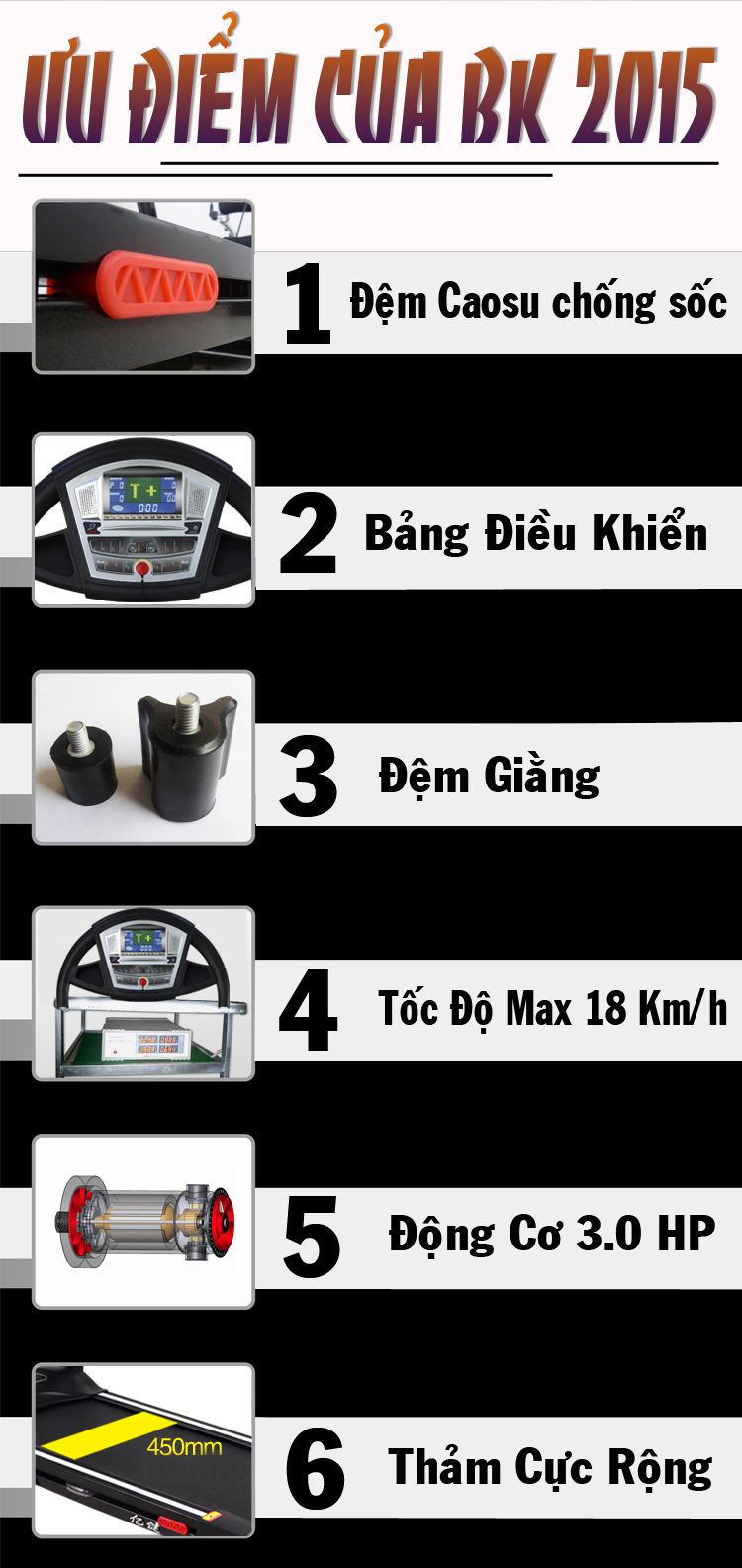 Trên con đường xây dựng và phát triển Nhanh24h.vn trở thành một trong những đơn vị phân phối, bán lẻ hàng đầu Việt Nam chúng tôi cam kết bán hàng chính hãng tốt giá rẻ nhất đến tay người tiêu dùng. Sản phẩm máy chạy bộ bk-2015 được vận chuyển và thu tiền tại nhà khu vực Hà Nội, Nam Định, Hưng Yên, Hải Dương, Thái Nguyên, Bắc Ninh, Ninh Bình, Thái Bình, Hà Nam, Hòa Bình, Phú Thọ, Cao Bằng, Quảng Ninh, Thanh Hóa, Vinh, Nghệ An, Sơn La, Lai Châu, Bắc Giang, Tuyên Quang, Tp Hồ Chí Minh, Hải Phòng, Cần Thơ, Đà Nẵng. Để biết chi tiết các chương trình khuyến mãi giảm giá cho sản phẩm máy chạy bộ bk-2015 vui lòng liên hệ HOTLINE : 0466.836.247
