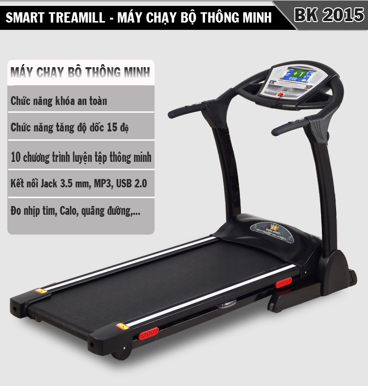 Thuộc dòng sản phẩm máy chạy bộ thông minh của King Sport. BK 2015 với kiểu dáng năng động, trẻ trung, cá tính và phong cách.