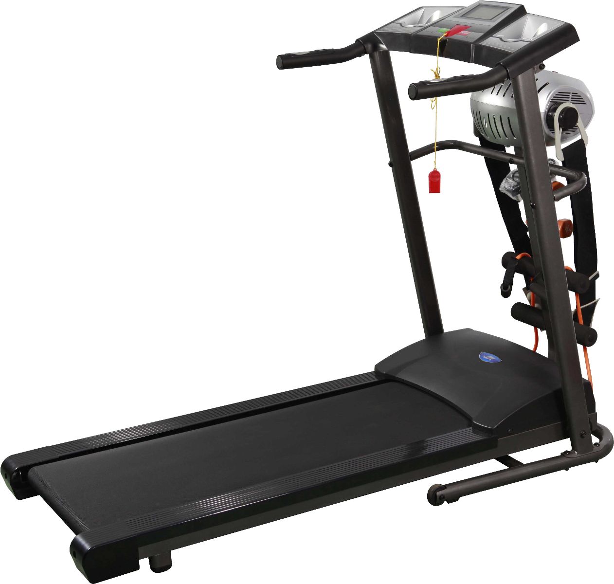 - Máy thuộc dòng máy đa năng, tích hợp 5 tính năng chính: chạy bộ, massage, tập cơ bụng, dây chun tập kéo tay, tập tạ.