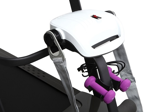 - Màn hiển thị LCD 7" nền xanh với các dữ liêu: Thời gian, quãng đường, vận tốc, nhịp tim, độ nghiêng, Bodyfat.